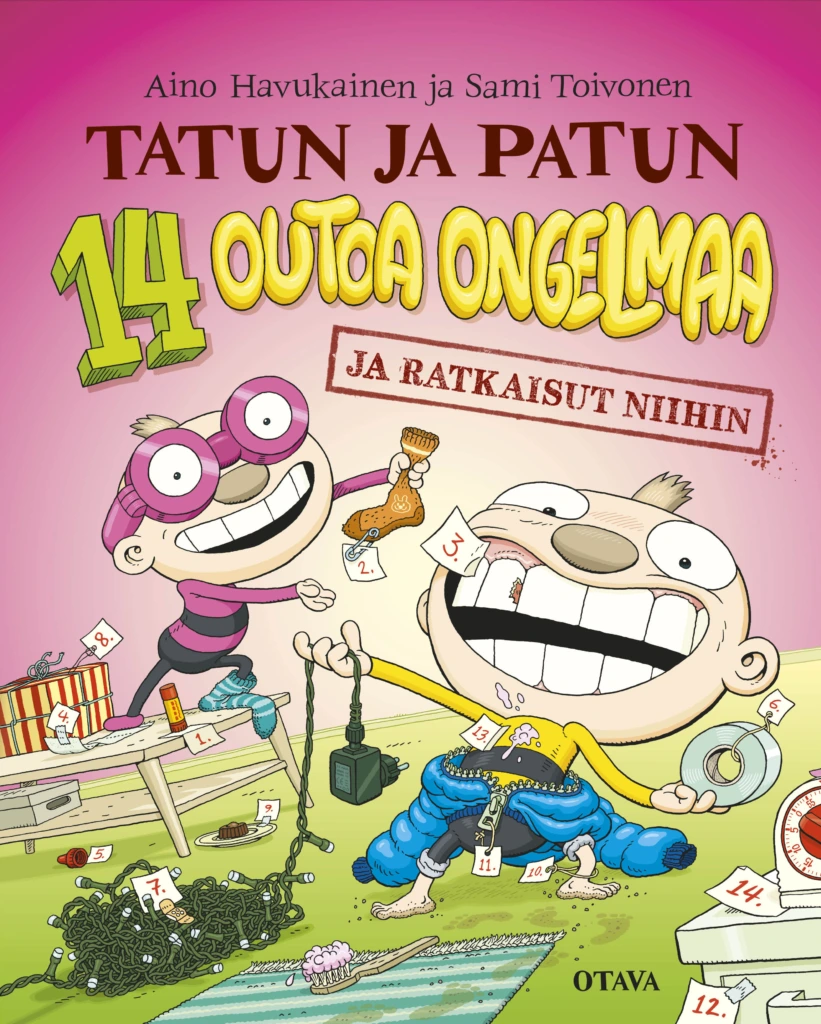 Aino Havukaisen ja Sami Toivosen “Tatun ja Patun 14 outoa ongelmaa” on hauska kirja, jossa keksitään ratkaisuja outoihin, mutta varmasti myös tuttuihin pulmiin. Lukiessa tätä kirjaa saa nauraa usein ääneen, koska veljekset keksivät aina hauskoja tapoja, joilla tehdä asiat.